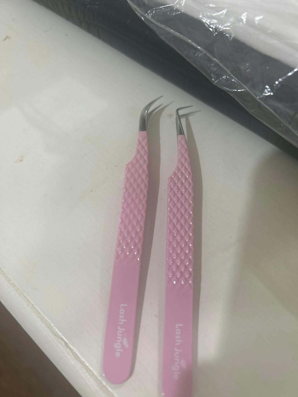 My favourite lashing tweezers paired with the pink straight isolation tweezers!